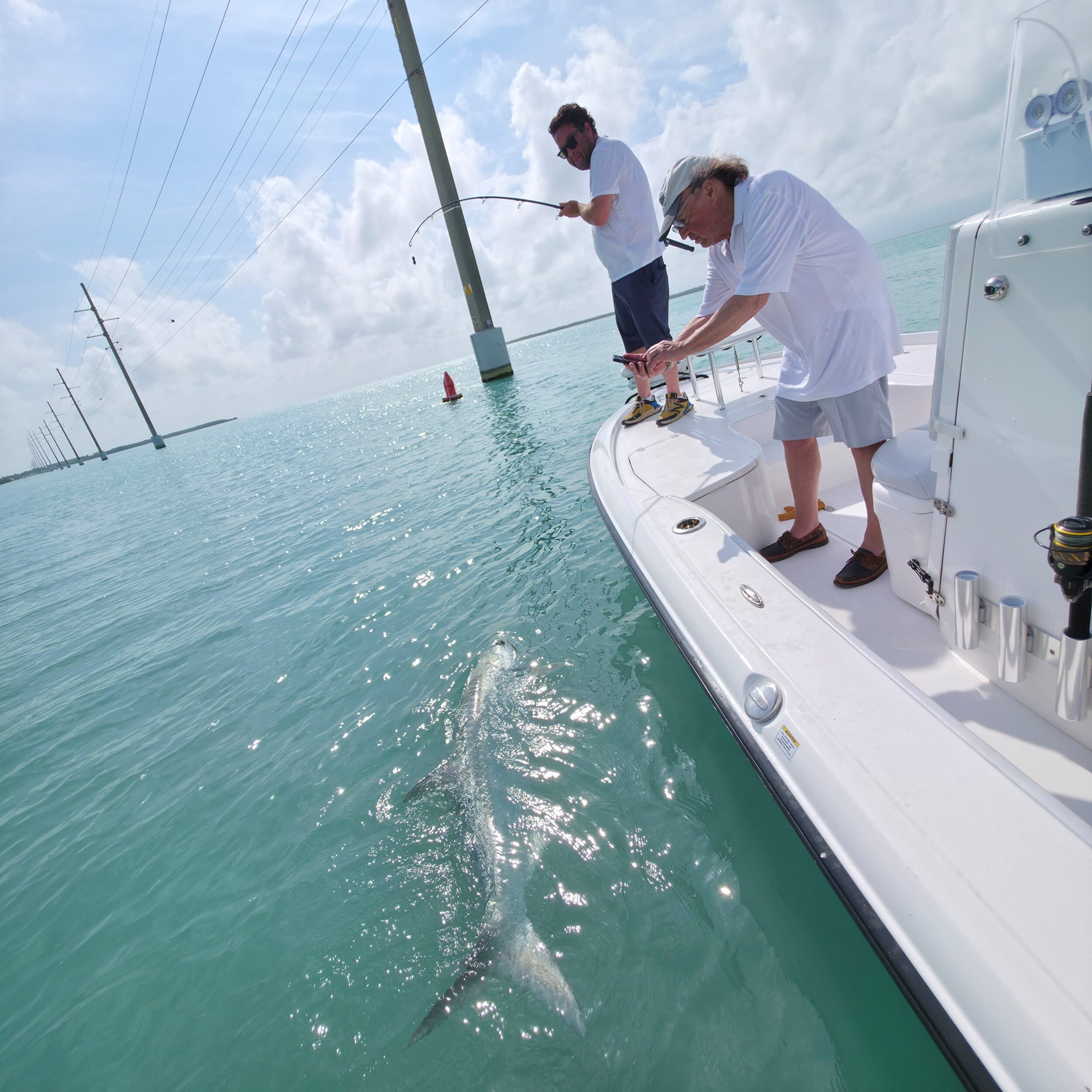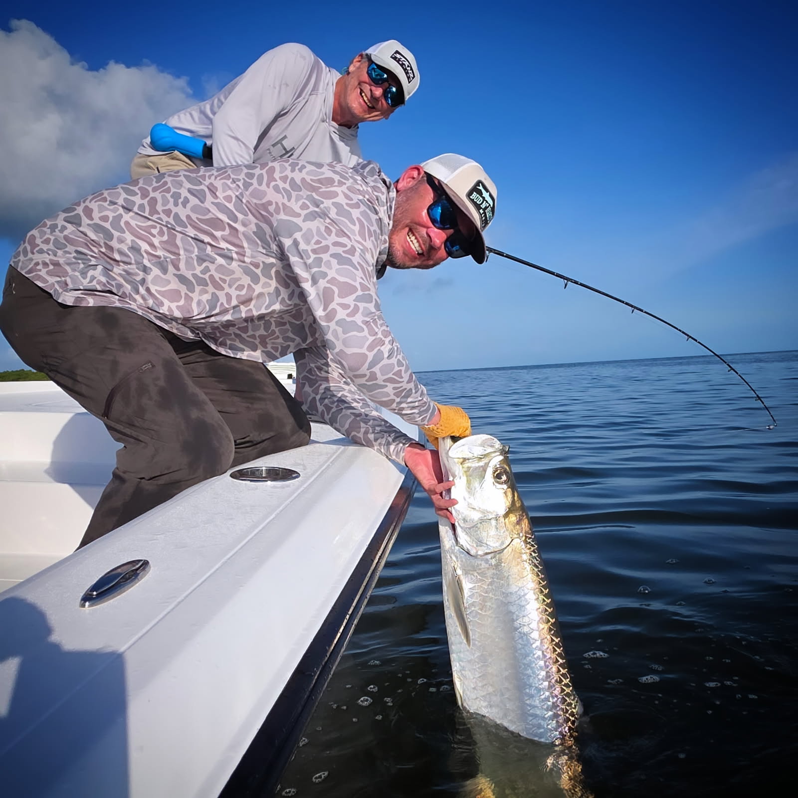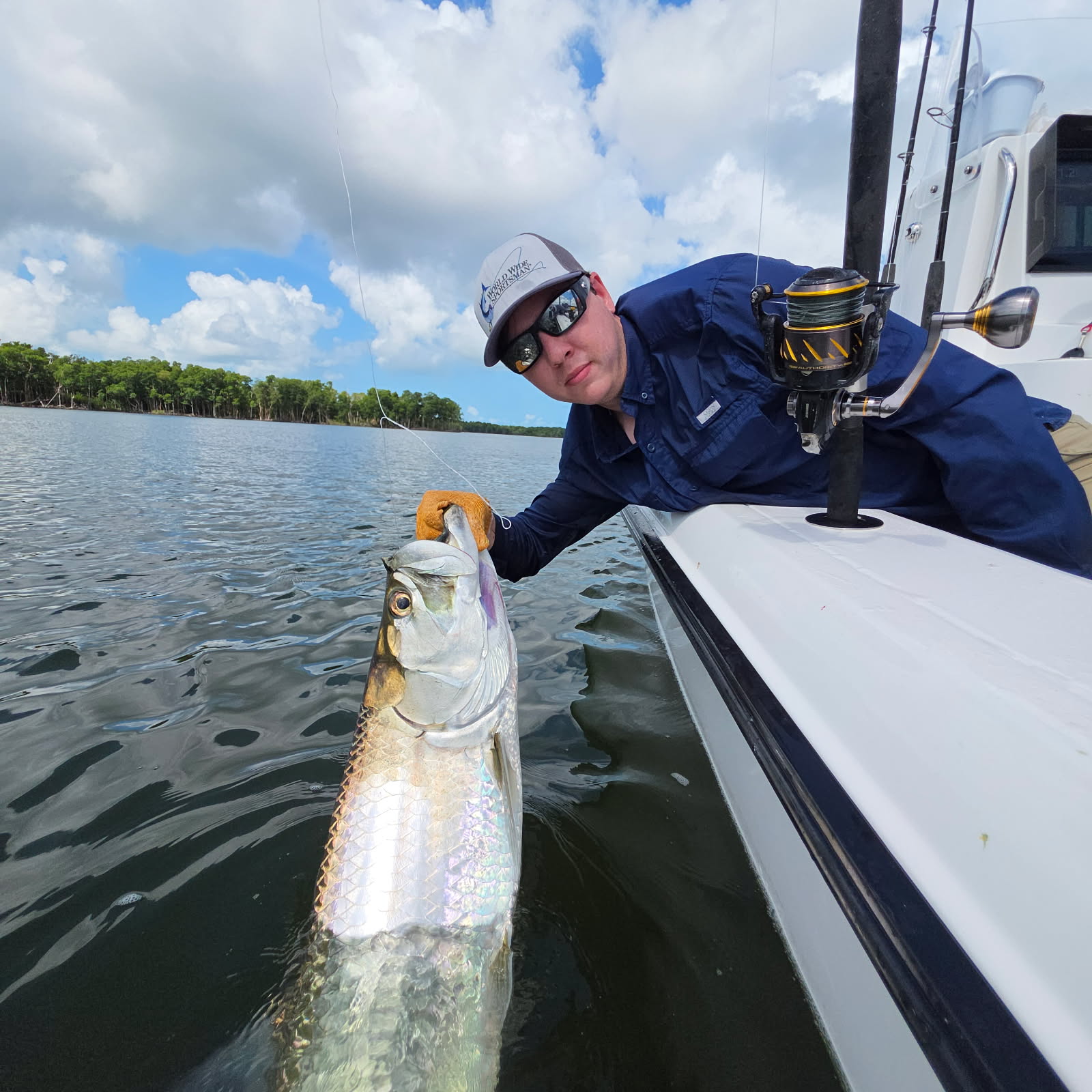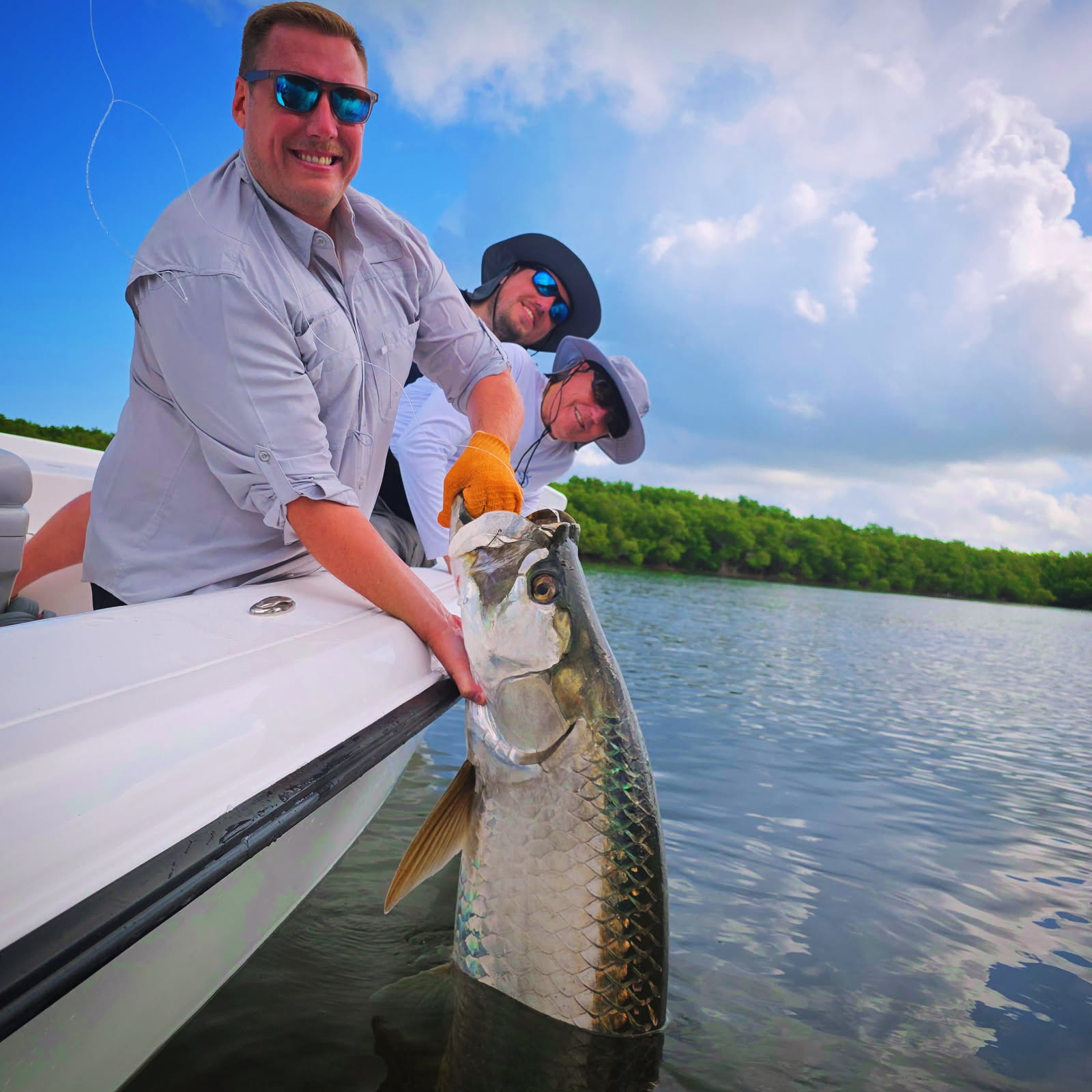 Well we’re into middle of May already can you believe it? Summer is definitely here now the winds seemed to lay down the last week or so and it’s gotten HOT! I’ve been on a pretty hot tarpon streak lately thankfully too after one of the toughest Aprils I’ve ever had. We’re still finding some fish deep in the backcountry and it’s been good to us. We’ve had to leave early to get there and it’s a bit of a run but it’s paid off. I had Jon and Dave for 3 days last week. Day 1 on Monday we got rained out in the AM but they asked if we could fish in the afternoon and I was able to make it happen. We stayed local though actually and it was a nice weather window. We caught a big 100 lb fish right off the bat in the local channels, she fought us hard for an hour and we got her boatside but she never gave up and eventually wrapped us up in the bridge. Then we jumped around and found a few more fish but they were uncooperative, but the last 15 minutes of the trip we had a few rolling around us and boom finally hooked another! A really wild fish that screamed out line and almost spooled us. Big fish too and looked like we were in for another long battle but we actually rolled this fish over in about 20 minutes which was cool and got good pictures. Great trip. Day 2 we ran deep in the backcountry like I was talking about and we had good action landing multiple tarpon and hooking plenty more. Day 3 we gave the tarpon a break and went snook fishing which was pretty good for us too. Thursday and Friday I had Gerald Stuart and his group from las vegas. We did the deep backcountry routine and it was really good. Thursday we landed 4 fish and had a few more in the air. Gerald caught a big one close to 100 lbs that we put on the wall with Grays Taxidermy. Then yesterday on Friday I had others from his group and we had similar fishing, jumping several small fish early on and then the guys each landed a tarpon including another big 120 lber and a few 30 lbers. Action all day we caught the last fish right before it was time to go in. So that deep backcountry option has been working, I’ve not fished back there much the last couple of years as we had tremendous bridge fishing but this year I’ve gone back to it. That is usually good through early June and then we’ll just see what’s goin on then. Sometimes the rest of the backcountry areas fill in with fish around flamingo, we’ll just have to see. There have been some fish in another area of the backcountry I know so maybe those will fill in a little more. Capt. Steve and Capt. Trent have been getting a few fish around the bridges still on the half day trips and evening trips and even full days, though often it’s a good bet to break it up and try some other stuff. As mentioned snook fishing is decent now and I know they’ve been getting some big snappers and other things too. Steve has had a couple of permit in the last week too. June is around the corner so if you are getting out of school and wanting to book a fishing trip give us a shout!