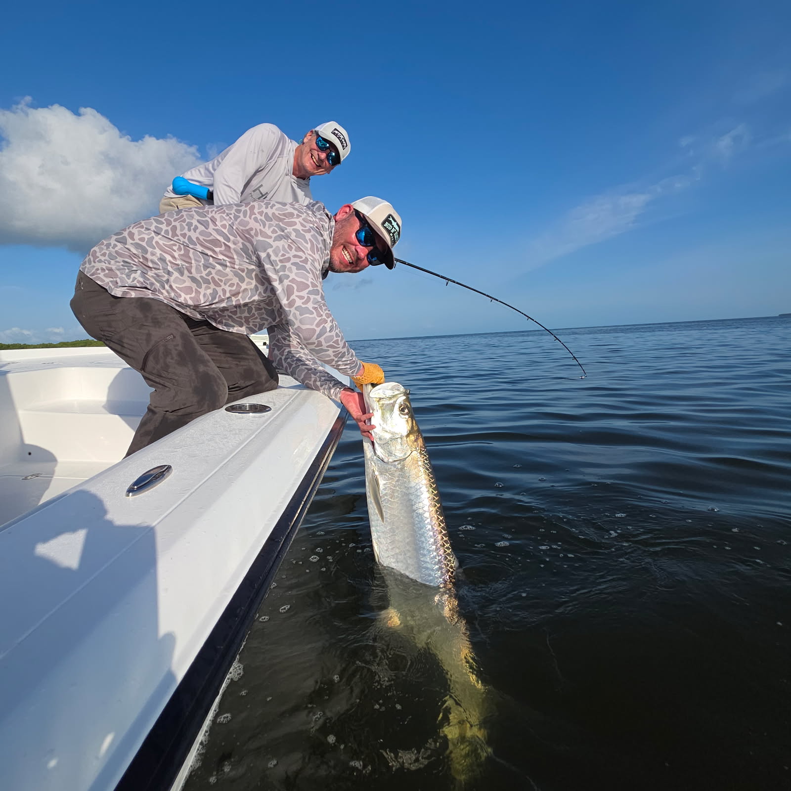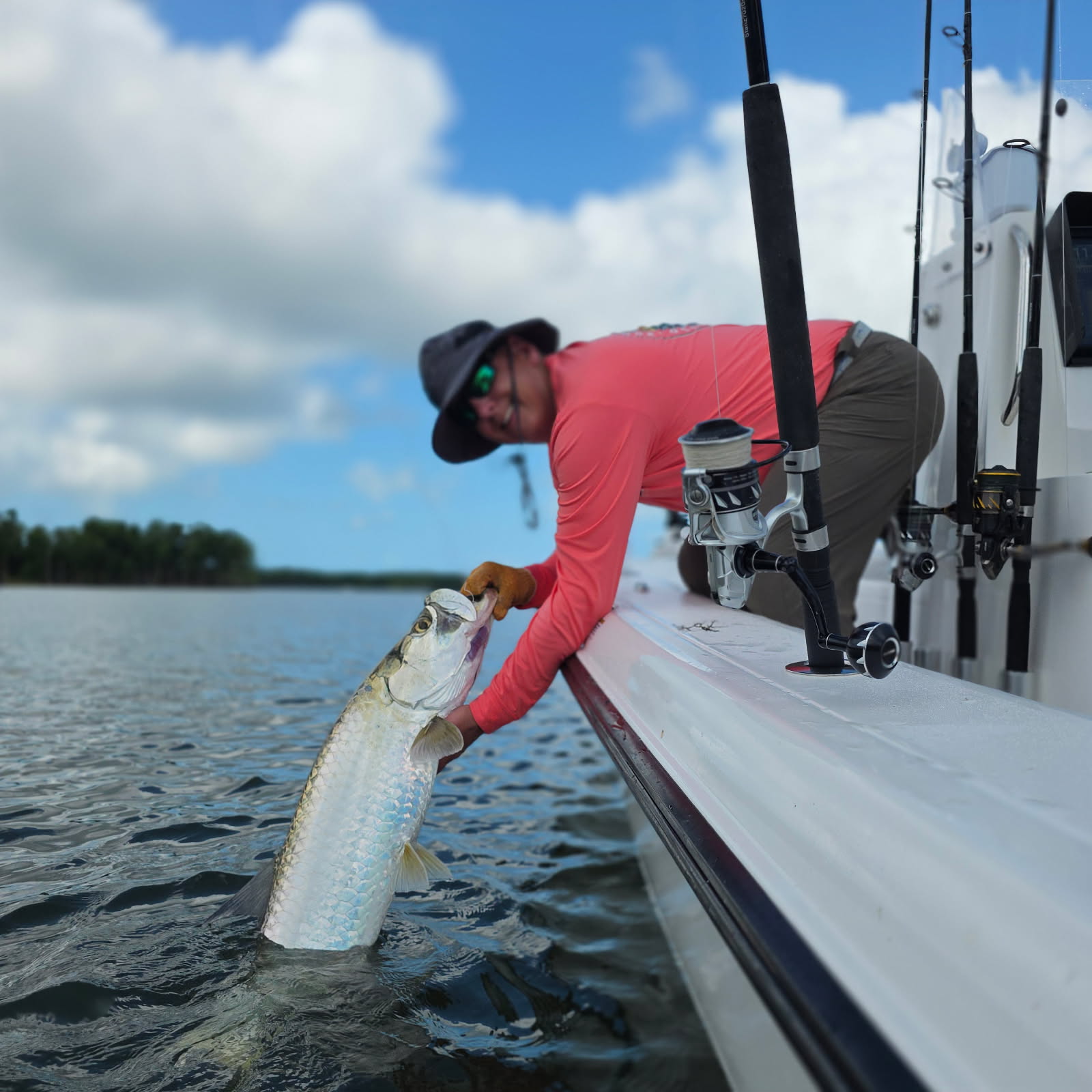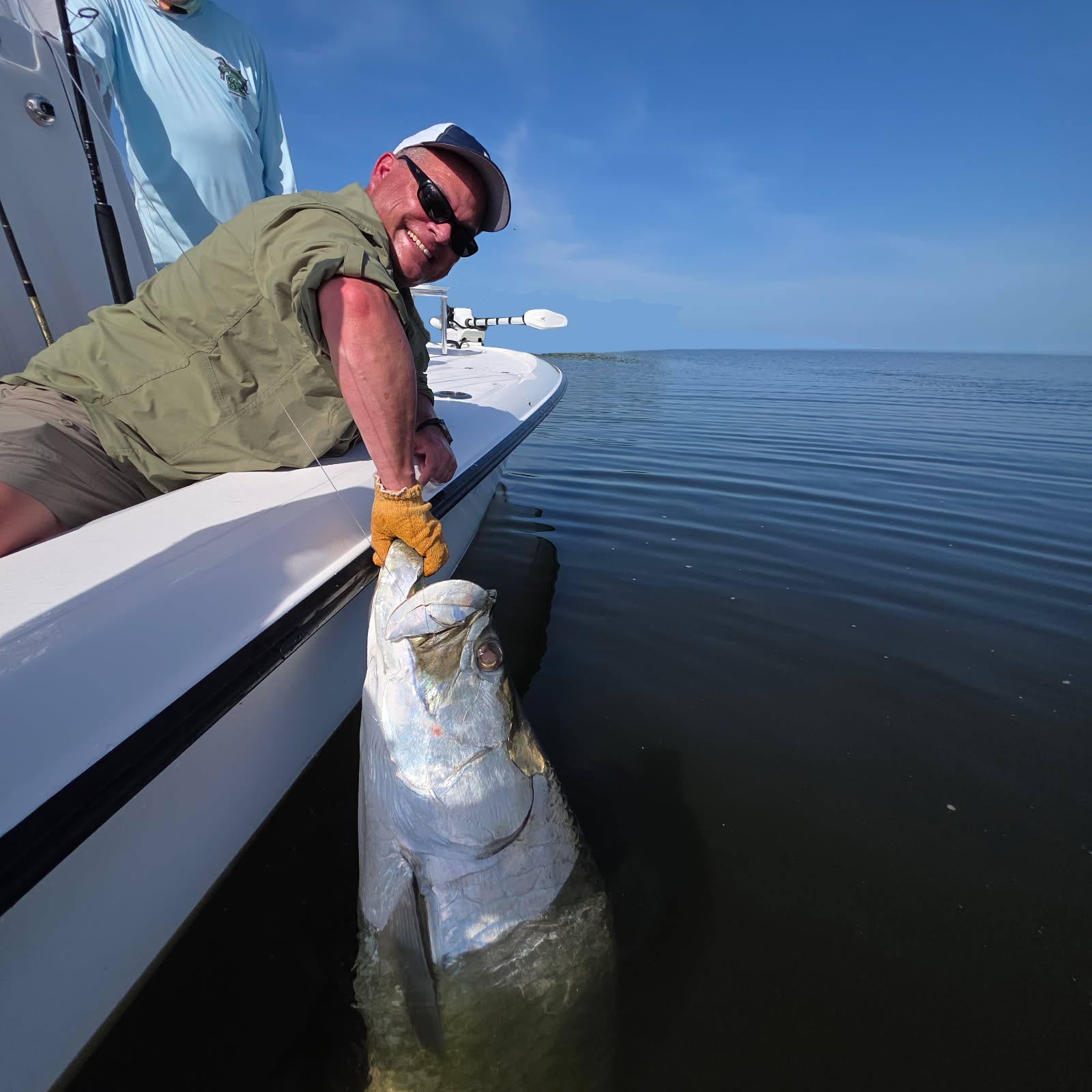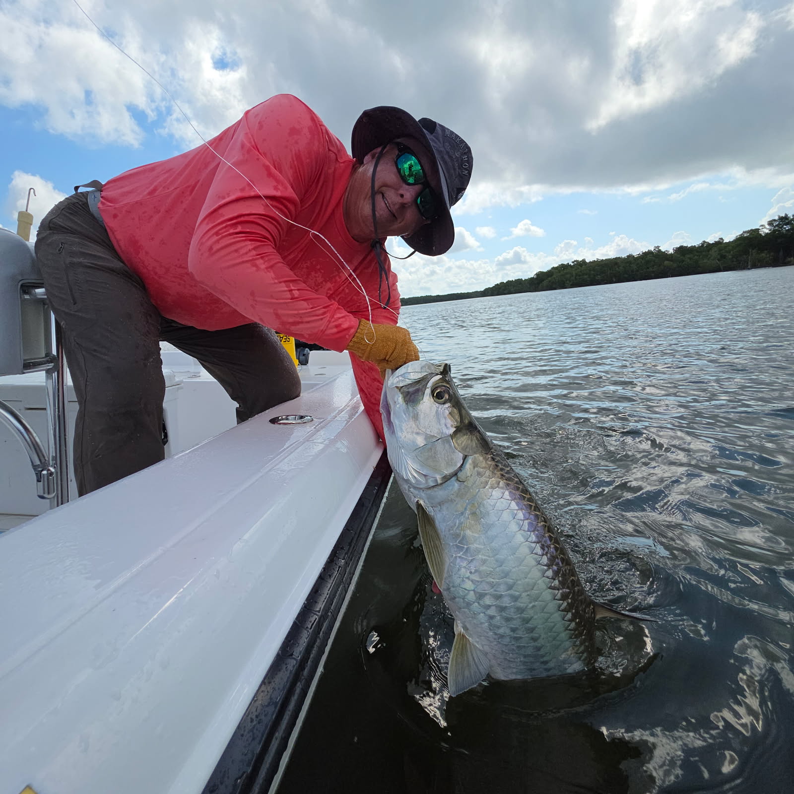 Well we’re into middle of May already can you believe it? Summer is definitely here now the winds seemed to lay down the last week or so and it’s gotten HOT! I’ve been on a pretty hot tarpon streak lately thankfully too after one of the toughest Aprils I’ve ever had. We’re still finding some fish deep in the backcountry and it’s been good to us. We’ve had to leave early to get there and it’s a bit of a run but it’s paid off. I had Jon and Dave for 3 days last week. Day 1 on Monday we got rained out in the AM but they asked if we could fish in the afternoon and I was able to make it happen. We stayed local though actually and it was a nice weather window. We caught a big 100 lb fish right off the bat in the local channels, she fought us hard for an hour and we got her boatside but she never gave up and eventually wrapped us up in the bridge. Then we jumped around and found a few more fish but they were uncooperative, but the last 15 minutes of the trip we had a few rolling around us and boom finally hooked another! A really wild fish that screamed out line and almost spooled us. Big fish too and looked like we were in for another long battle but we actually rolled this fish over in about 20 minutes which was cool and got good pictures. Great trip. Day 2 we ran deep in the backcountry like I was talking about and we had good action landing multiple tarpon and hooking plenty more. Day 3 we gave the tarpon a break and went snook fishing which was pretty good for us too. Thursday and Friday I had Gerald Stuart and his group from las vegas. We did the deep backcountry routine and it was really good. Thursday we landed 4 fish and had a few more in the air. Gerald caught a big one close to 100 lbs that we put on the wall with Grays Taxidermy. Then yesterday on Friday I had others from his group and we had similar fishing, jumping several small fish early on and then the guys each landed a tarpon including another big 120 lber and a few 30 lbers. Action all day we caught the last fish right before it was time to go in. So that deep backcountry option has been working, I’ve not fished back there much the last couple of years as we had tremendous bridge fishing but this year I’ve gone back to it. That is usually good through early June and then we’ll just see what’s goin on then. Sometimes the rest of the backcountry areas fill in with fish around flamingo, we’ll just have to see. There have been some fish in another area of the backcountry I know so maybe those will fill in a little more. Capt. Steve and Capt. Trent have been getting a few fish around the bridges still on the half day trips and evening trips and even full days, though often it’s a good bet to break it up and try some other stuff. As mentioned snook fishing is decent now and I know they’ve been getting some big snappers and other things too. Steve has had a couple of permit in the last week too. June is around the corner so if you are getting out of school and wanting to book a fishing trip give us a shout!