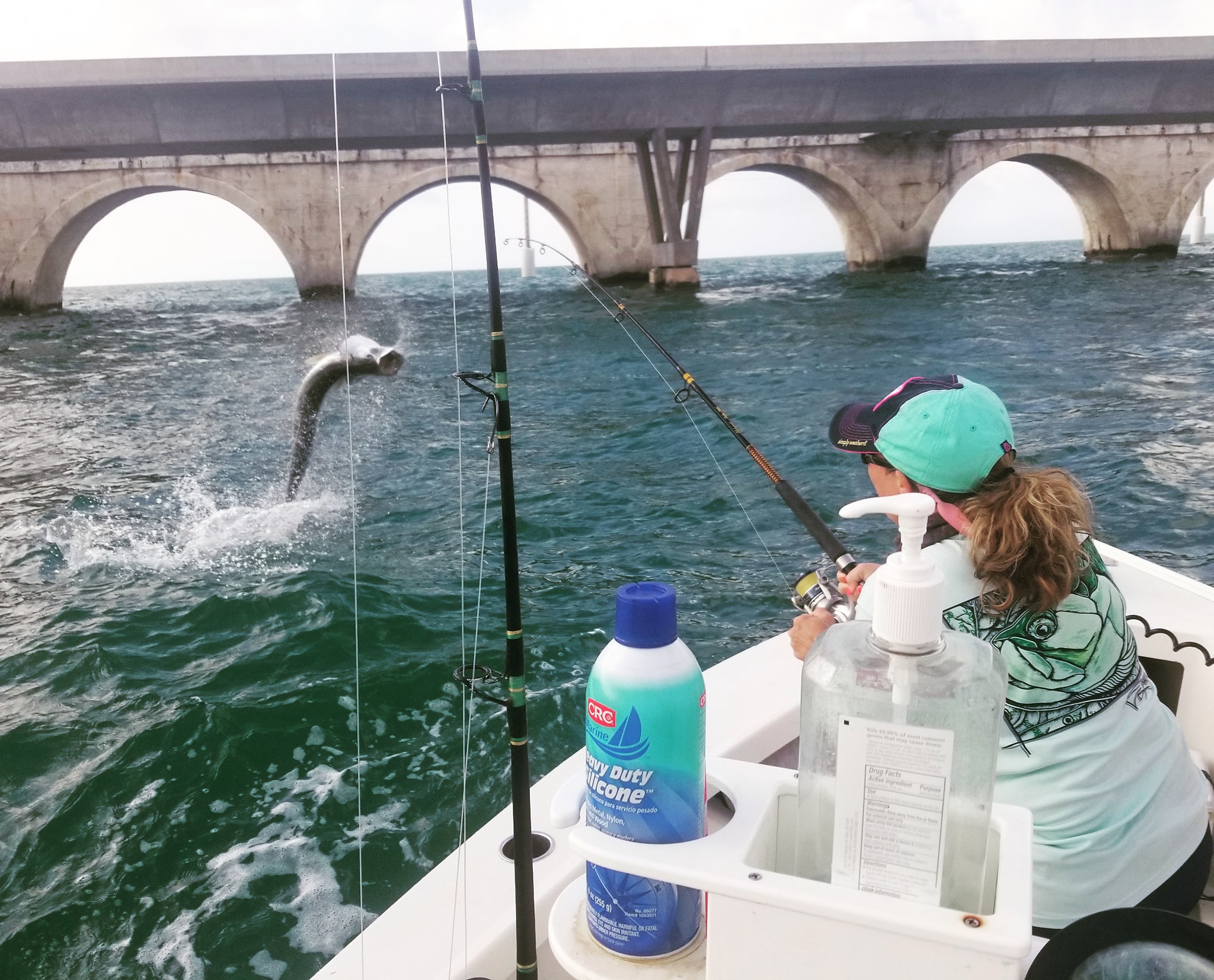 Awesome day with the McElroy crew! We spent the day tarpon fishing. Caught some bait early and hit the bridges. Little choppy with the south wind and a hard tide, and very grassy as has been the case often lately. With such a warm early summer, the sargasm showed up ahead of schedule. Anyways we got anchored and just had steady tarpon action until 11 am or so. They were eating everything, great live bait bites and putting on a great show. It was combat fishing trying to maneuver around the bridges but we got 3 tarpon to the hand, leader release on a 4th, and lost a 5th in the bridge. But we probably had ten other bites – a lot of grabs on the live baits and they’d pull for a couple seconds and spit it. But exciting none the less! After we were out of fresh bait we caught some more, had to work at it but got a decent amount. Tried fishing locally near home the last hour and had a few mystery bites plus caught a couple big Jack’s and sharks. But that was it and the jet skis we’re absolutely ridiculous 😒. Back at it tomorrow have the same crew for 3 days we may mix it up some but looks like nice weather and should be good fishing! 4 for 15